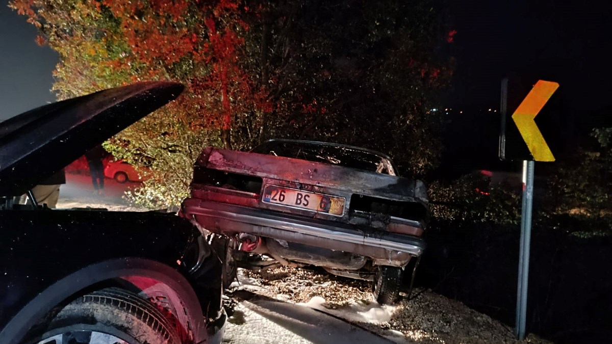 Bursa’da ciple kafa kafaya çarpışan otomobil alev aldı